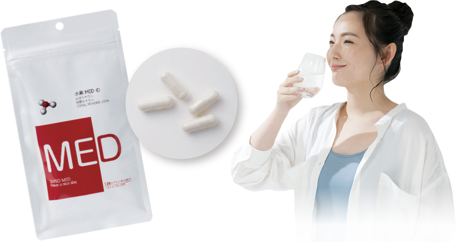 この水素を効率良く体内に取り入れ水素を持続的にすみずみまで行き渡らせる方法の一つとして水素サプリメントが開発されました。